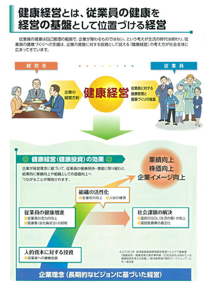 健康経営に取り組む優良な法人を「見える化」することで、従業員や求職者、関係企業や金融機関などから社会的に評価を受けることができるよう整備されています。