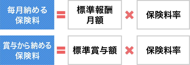 健康保険に加入すると、保険料を納めることになります。保険料は収入(給料や賞与などの総報酬)に応じた額となりますが、毎月の給料と賞与で計算方法が異なります。